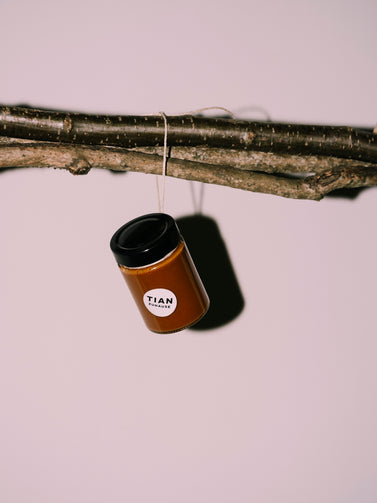Sea buckthorn 36%, apricot, sugar, milk chocolate (55% cocoa), salt, pectin, Assam pepper, star anis, bourbon vanilla, allspice.