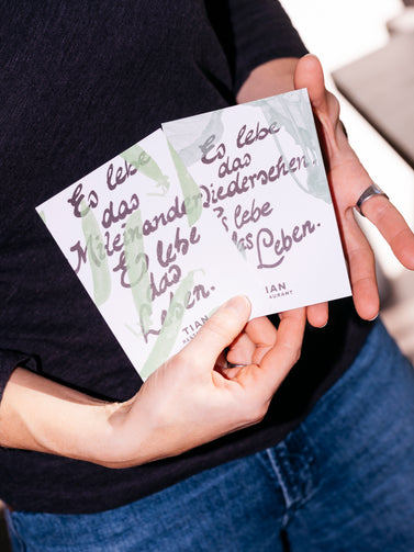 Füge eine Grußkarte zu deiner Bestellung hinzu und mach dein Geschenk noch persönlicher. Ob liebe Worte, Glückwünsche oder persönliche Grüße – du entscheidest, was wir auf die Karte schreiben sollen.